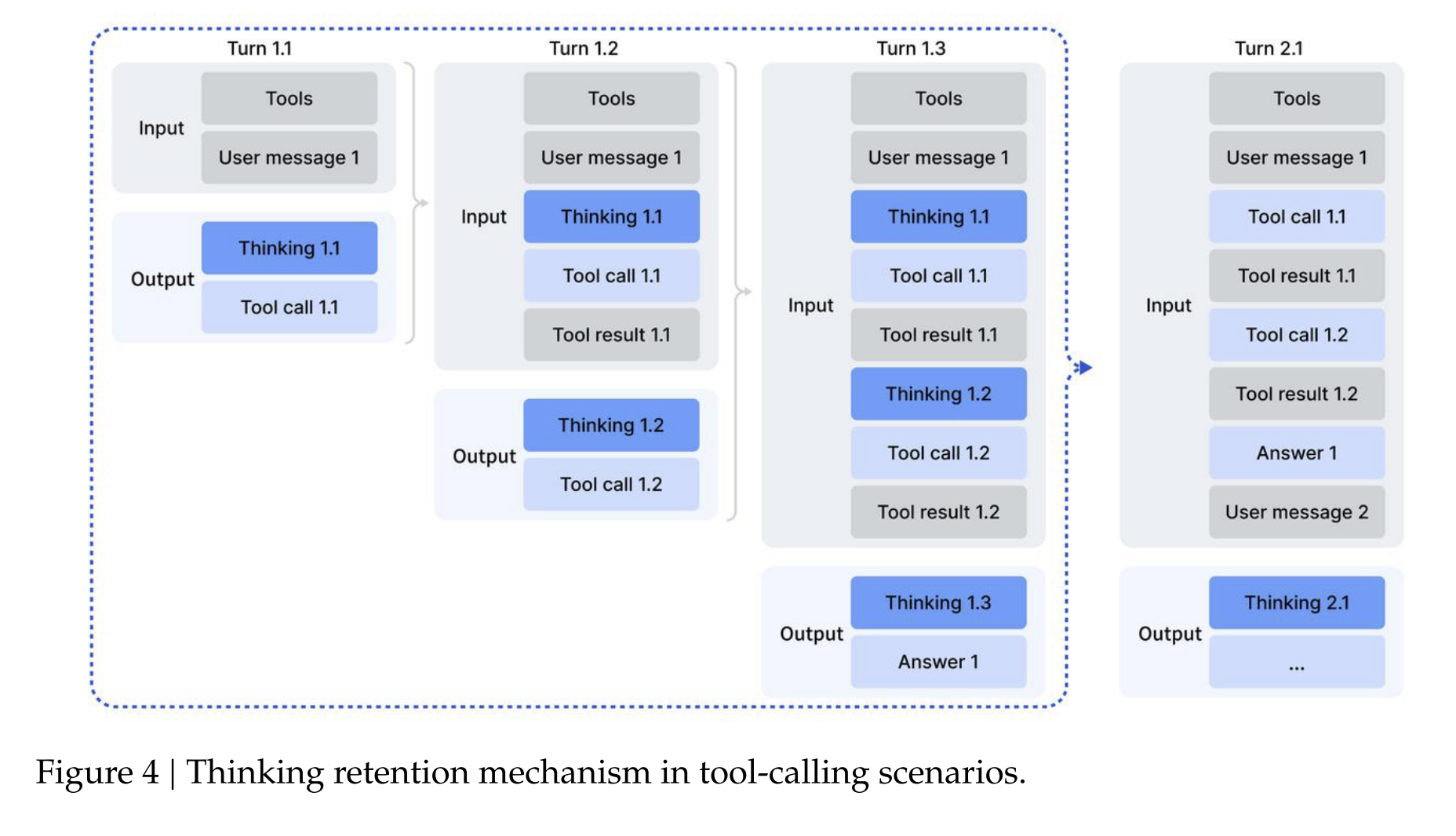 I find the section 3.2 the most interesting to me. The team first explains a new context management protocol for tool-use. They observed that discarding reasoning tokens at a new round of messages, which is a common practice, forces the model to re-reason at subsequent tool call, resulting in significant token inefficiency. Therefore, the team proposes a new context management method tailored for tool-calling: